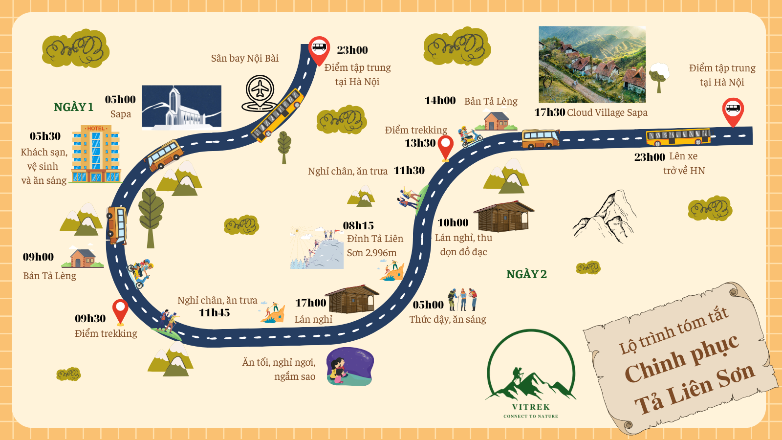 Lộ trình tóm tắt hành trình chinh phục Tả Liên Sơn